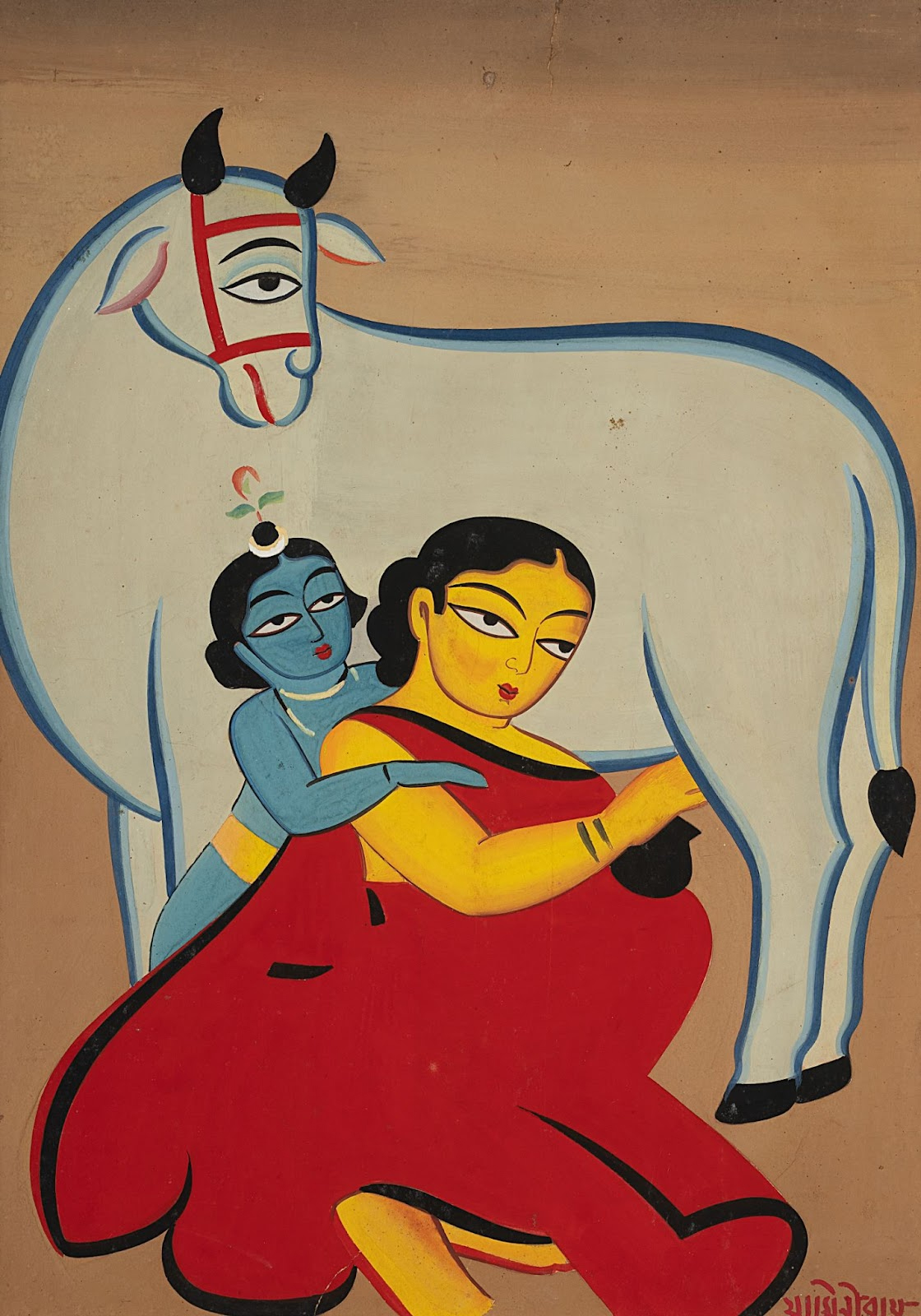 Devi pistol Wali by Arpita Singh draws on the iconography of Goddess Durga. Yet, Singh’s reimagining of the goddess raises several questions. Who is this pistol-wielding figure? Why does she wear white, a colour associated with widows? Why has the artist imagined her as a mortal woman?